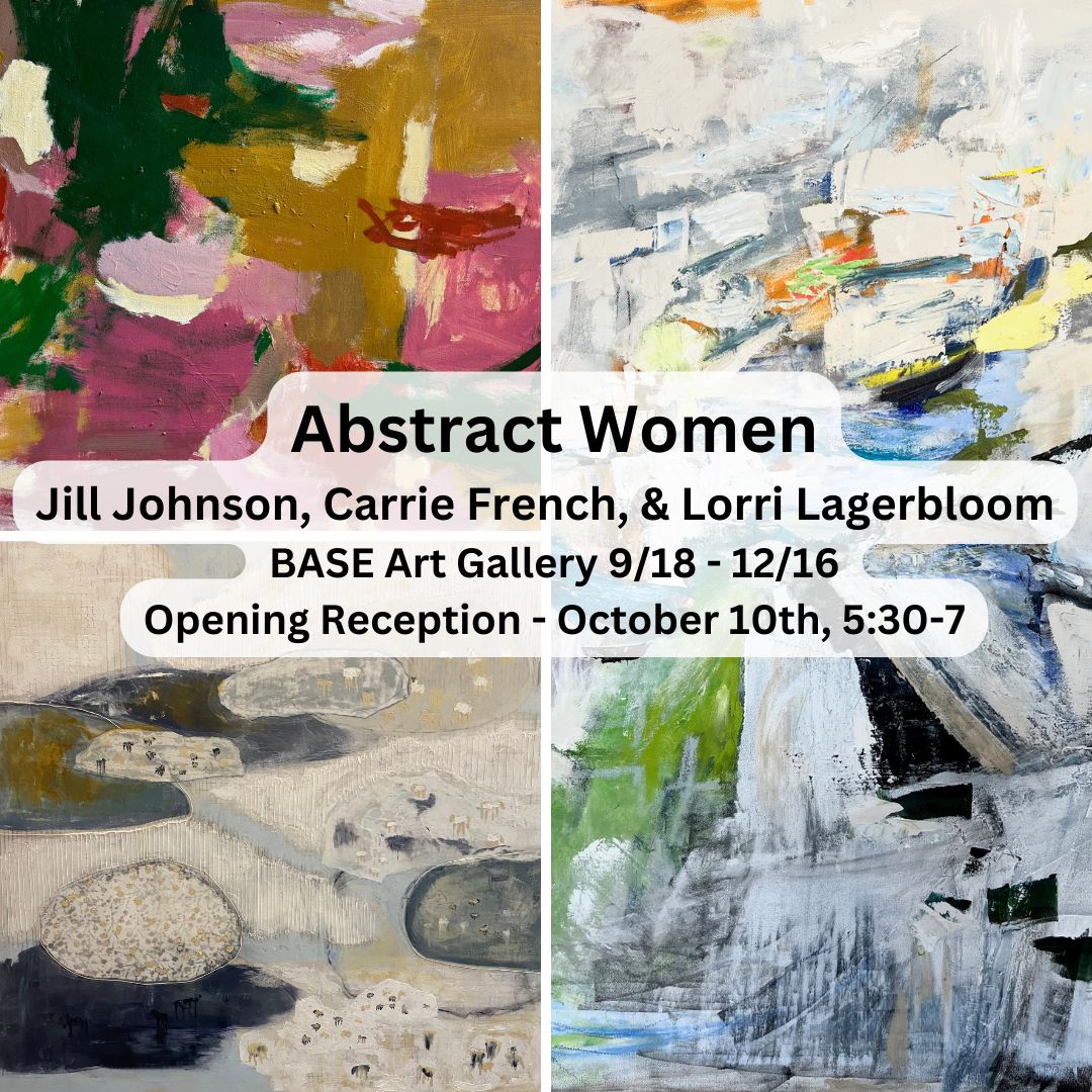 Abstract Women, featuring Jill Johnson, Carrie French, and Lorri Lagerbloom, will be showing in the BASE Art Gallery September 18th to December 16th. Please join us for the Opening Reception on Thursday, October 10th from 5:30-7. You'll have an opportunity to meet the artists and check out this amaz...