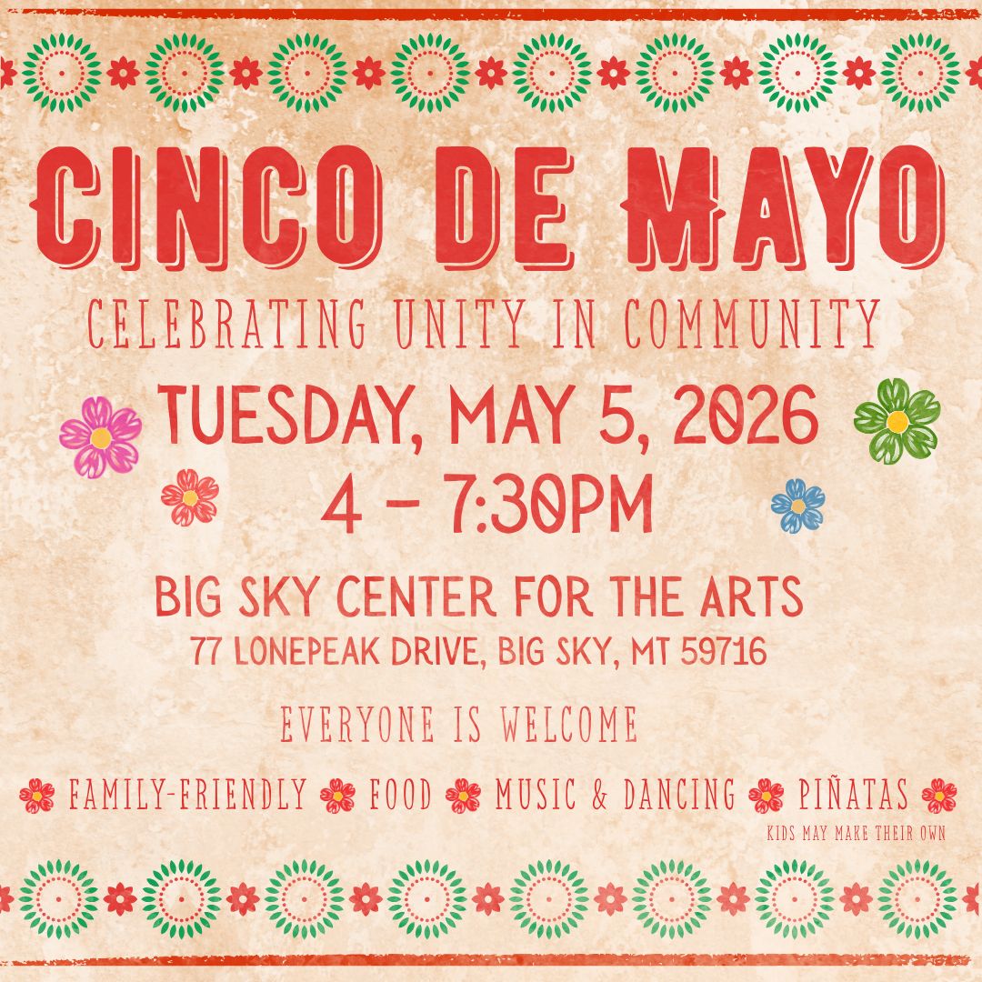 Celebrate the first-ever Big Sky Cinco de Mayo Celebration at the Big Sky Center for the Arts! This family-friendly event brings the community together for an evening of food, music, dancing, and festive fun. Kids can enjoy piñatas and hands-on piñata making, while families and neighbors celebrate unity and connection. Everyone is welcome to join in this colorful and lively celebration of culture and community. More details coming soon. We can’t wait to see you there!