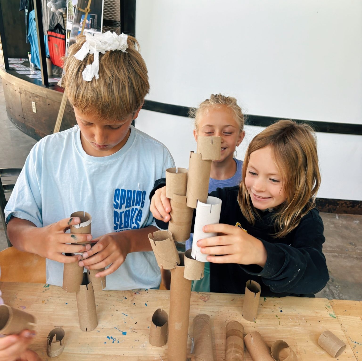 Campers will learn how to repurpose materials that might otherwise be thrown away, discovering how cardboard, paper scraps, packaging, and found objects can become exciting creative tools. Throughout the week, campers will experiment with a variety of projects, including building a collaborative cardboard sculpture as a group, creating textured collage pieces from recycled materials, and designing imaginative constructions from everyday objects. Nature will also be a source of inspiration as campers collect fallen leaves, sticks, and other natural treasures to incorporate into nature-based art.